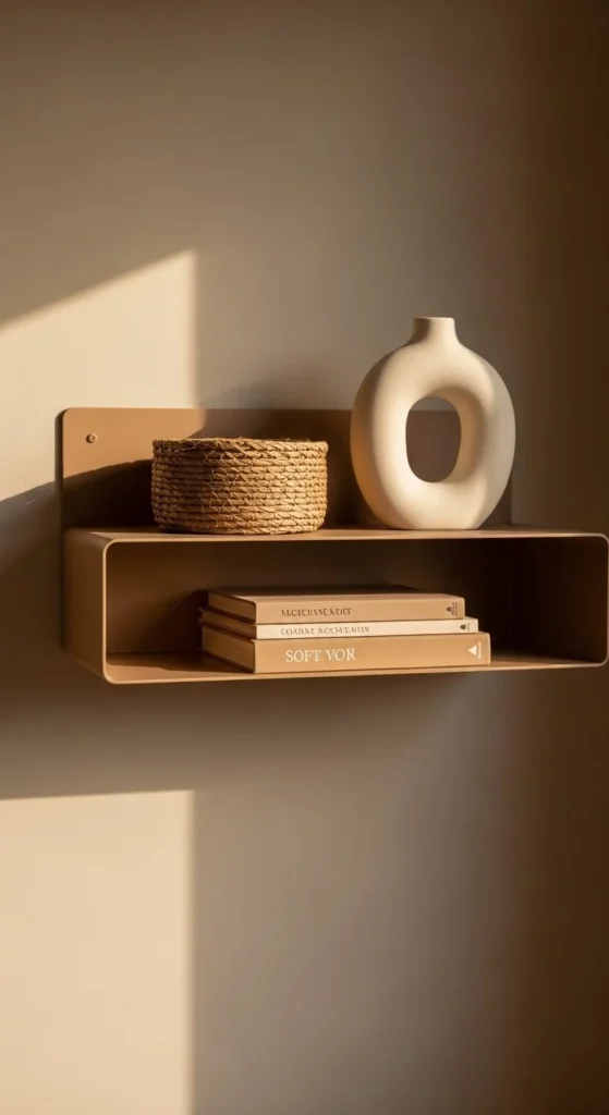 This style suits small spaces and rooms with lots of light. It also pairs well with plant-heavy corners nearby. The shelf doesn’t compete. It supports the room’s mood.