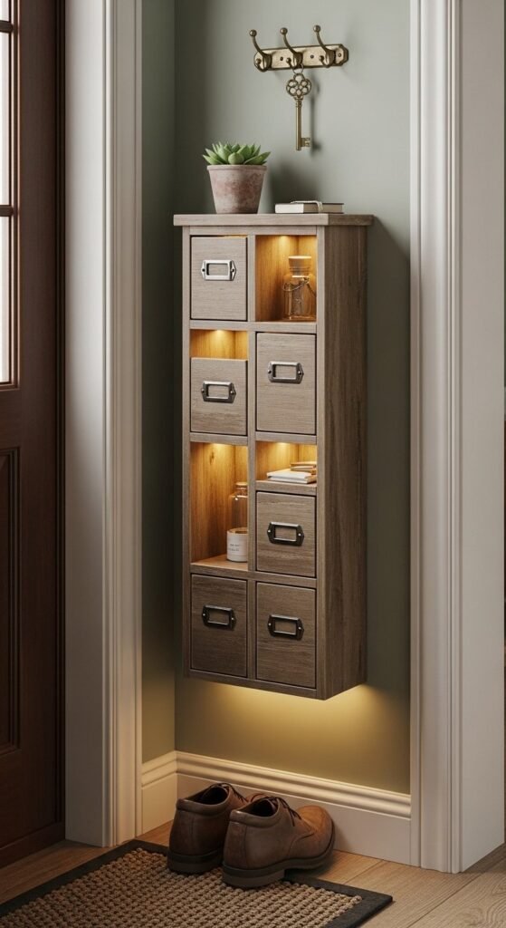 Cubby cabinets organize small items fast. Keys, tools, craft supplies all get their own slot. Mount them at eye level to save floor space. Vintage-style cubbies add charm, while modern versions stay sleek. DIY builds use plywood and simple dividers. Compartment-based storage prevents pile-ups in small homes. Keep contents minimal so cubbies don’t look busy. This works well in entryways, offices, or kitchens.