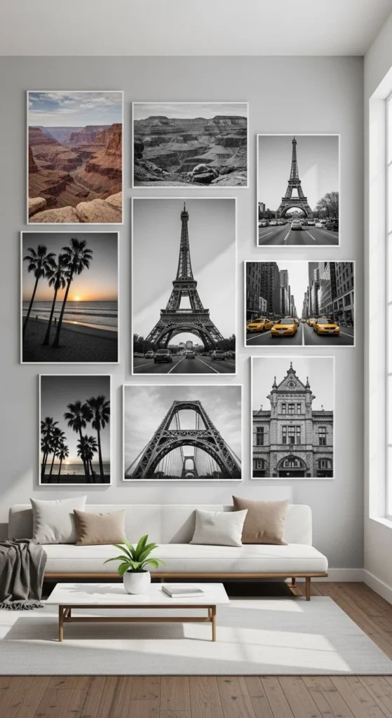 This style adds personal storytelling to walls. Ideal for hallways and staircases where guests pause to look.