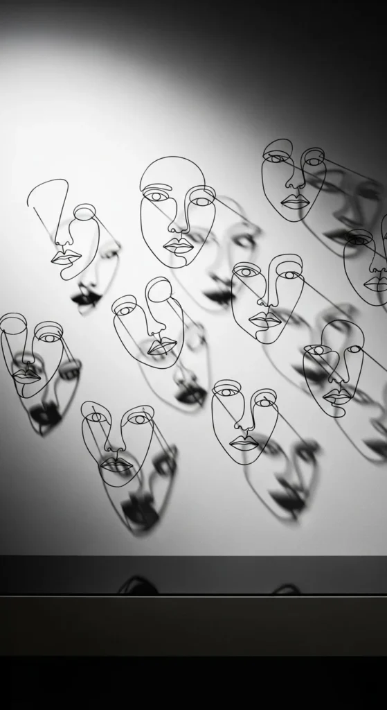 Choose black matte wire for bold outlines. Gold wire adds elegance. Keep walls light for contrast.