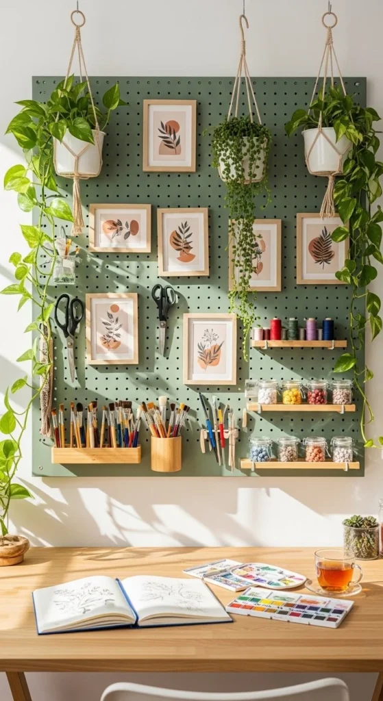 Pegboards aren’t just storage. They double as wall art. Paint the board to match your room palette. Sage, blush, and charcoal are popular choices.