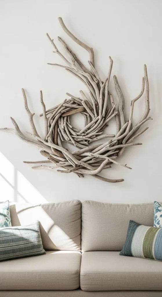 Nature makes the best wall decor. Driftwood pieces bring organic texture indoors. Collect branches from beaches, riverbanks, or forests. Clean and dry them thoroughly before use.