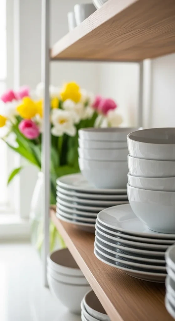 Simple dinnerware makes everyday meals feel special. White ceramics work with any tablescape. Look for subtle rims or handmade-style edges. Mix matte and glossy finishes for interest. Replace chipped pieces gradually. Timeless table settings never feel dated. Pair with linen napkins for spring.