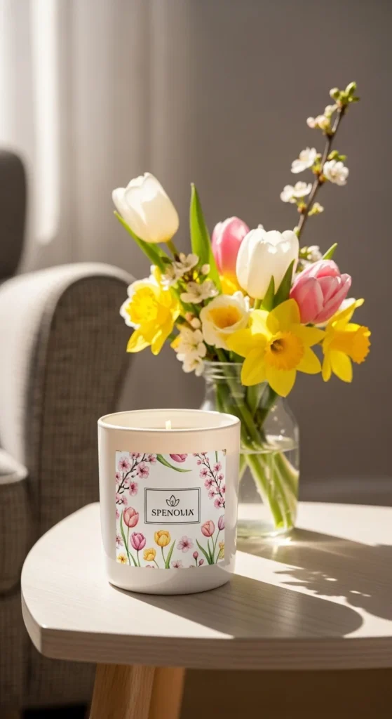 Candles add scent and glow. Choose light floral or citrus notes for spring. Stick to simple containers. Group two or three for impact. Trim wicks before lighting. Gentle fragrance layers make spaces feel welcoming. Avoid overpowering scents.