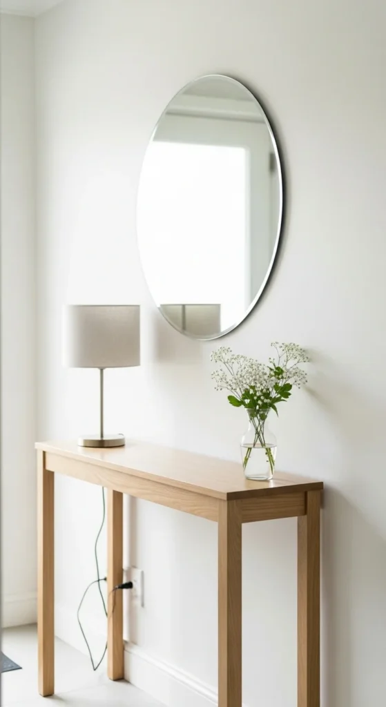 Console tables create a landing zone. Keep decor limited to a few pieces. Use trays to corral small items. Add a basket underneath for storage. Clean-lined furniture keeps entryways feeling open. Wipe surfaces regularly.