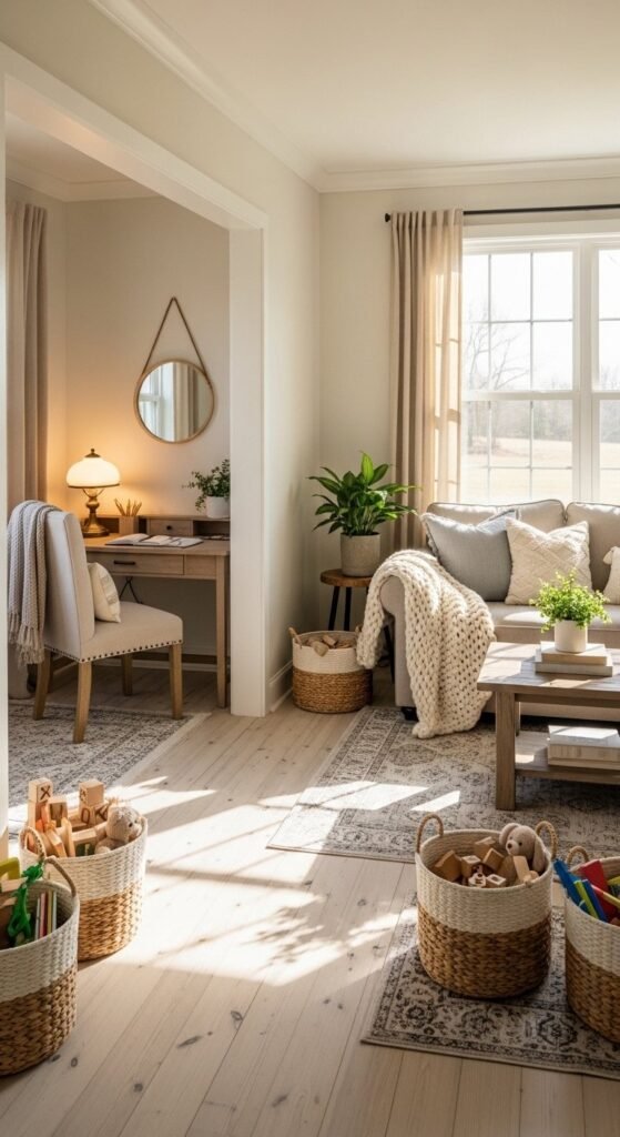 For kids or pets, baskets hide clutter fast. Woven ones feel intentional, not messy. Keep them within reach.