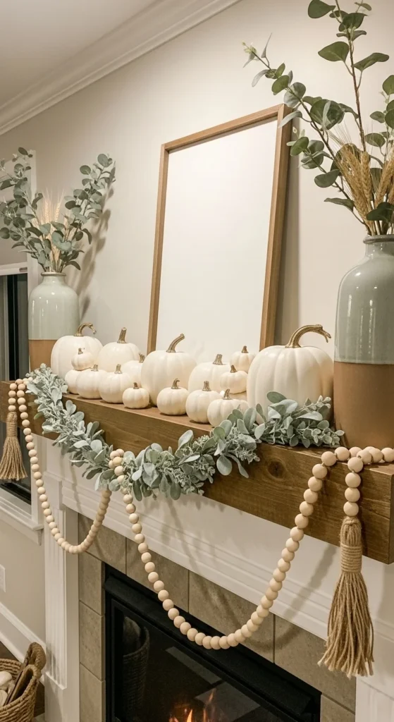 11. White Pumpkin Fall Mantel