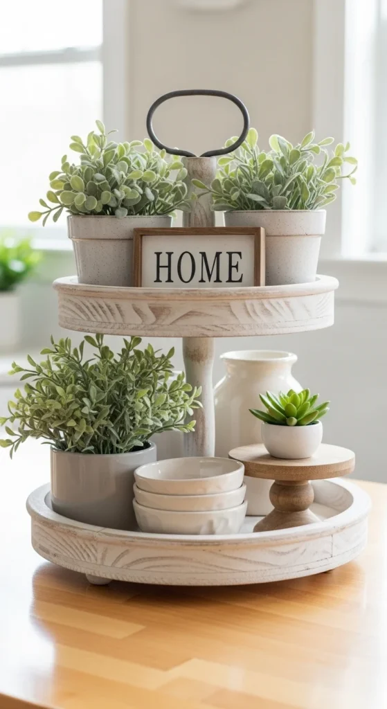 21 Adorable Farmhouse Tiered Tray Decor Ideas You’ll Want to Copy