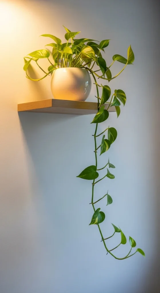 A plant shelf helps draw the eye upward, adding dimension. Trailing plants like pothos or philodendrons soften corners and vertical lines. Mount the shelf slightly higher than usual to allow space for the plant to grow downward. Avoid overcrowding the shelf with additional objects. Let the greenery be the focal point. Water lightly and rotate the plant occasionally for even growth.