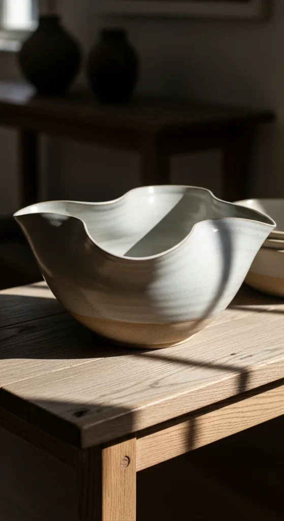A sculptural bowl adds presence. Choose one with gentle, flowing lines. Use it to collect small everyday items or leave it empty as a form of art. A bowl with slight imperfections often feels more inviting. If you wish to add subtle color, choose muted earthy glazes.