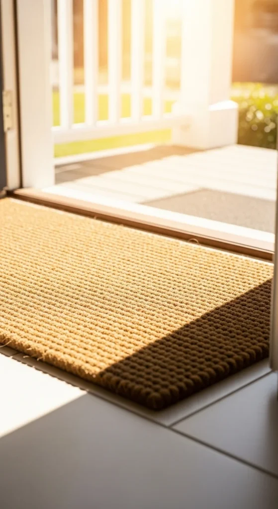 A durable doormat inside the entry helps catch dust and gives the space a cared-for feel. Choose one with a subtle texture rather than a heavy pattern. Indoor-outdoor mats are easier to clean and hold shape well. Shake it out outside regularly to maintain softness. The key is choosing a mat that blends gently with flooring so the entrance looks unified.