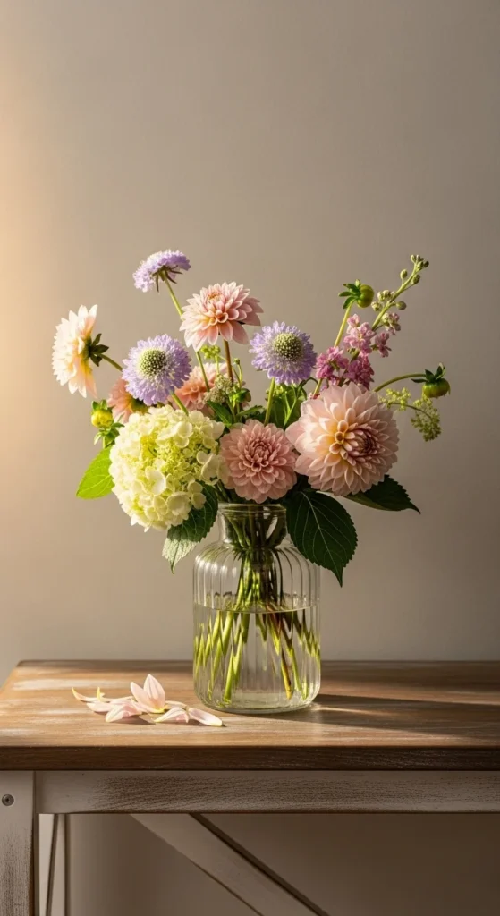 A small floral arrangement makes the entrance feel welcoming. Choose blooms with gentle shapes—tulips, ranunculus, chamomile, or hydrangea. Keep the arrangement loose rather than tightly structured. You don’t need many stems—five to eight is enough. Replace the water every couple of days and trim the ends slightly to help the flowers last. This is a simple warm greeting touch anyone can add.