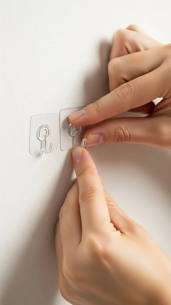 • Transparent hooks or adhesive strips