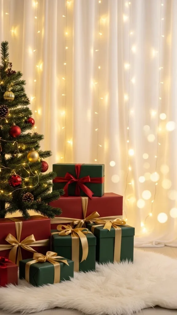 • White sheer curtains for a classic Christmas look