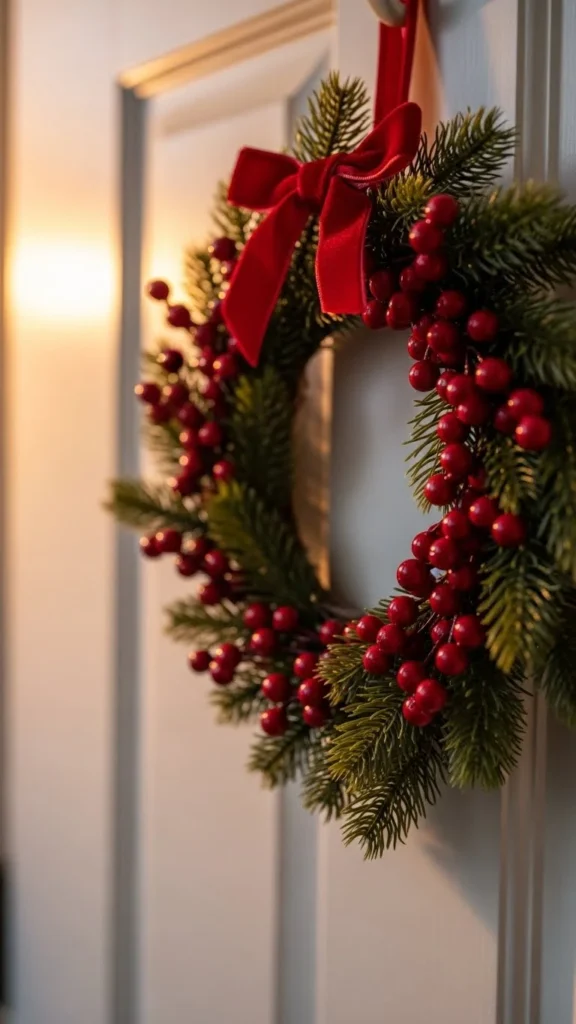 - Traditional: Red berries, fir branches, glossy leaves