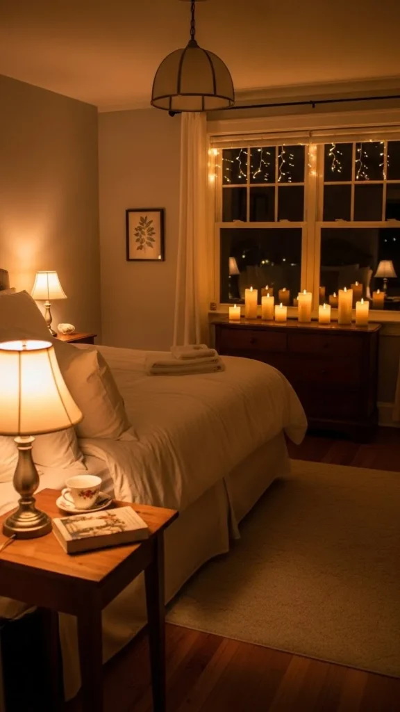 - A holiday-scented candle (unlit for safety!) on the nightstand