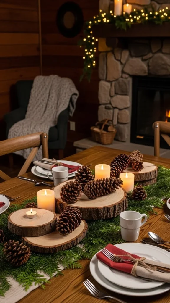 - Sprinkle a few loose pine cones around the table edges for continuity.