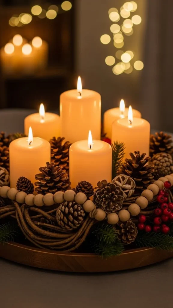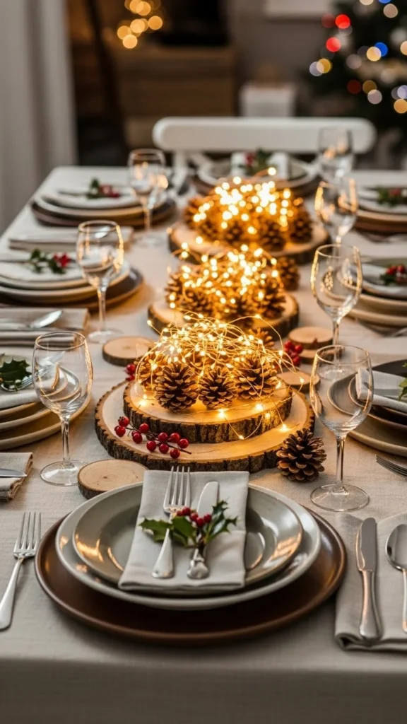 With just pine cones, wood, and a little creativity, you’ve crafted a centerpiece that feels warm, elegant, and naturally festive. It’s a beautiful way to bring the outdoors inside and set the tone for a cozy Christmas gathering.
