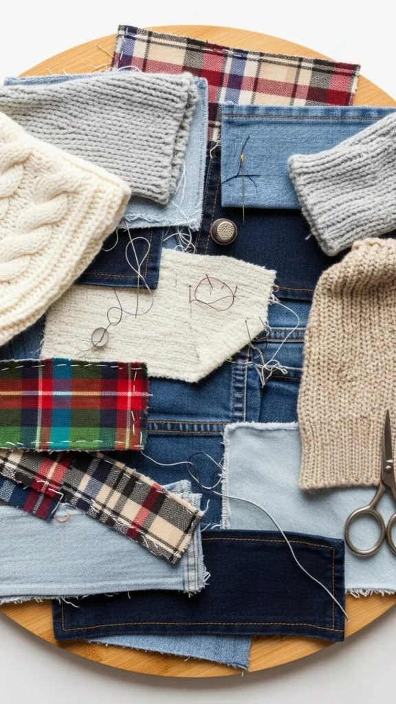 Before you begin, you’ll want to choose fabrics that feel warm and seasonal. The beauty of upcycling is that nothing needs to match perfectly—mixing textures makes the final skirt more interesting.