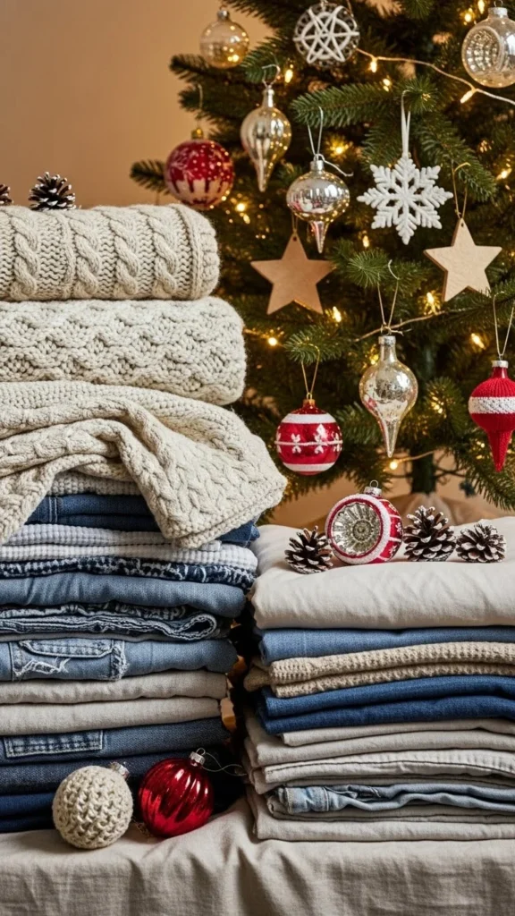 - Denim pieces for modern, casual winter décor