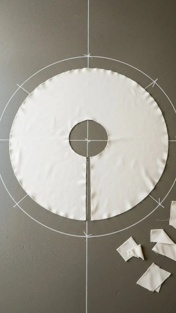 - A straight line from the outer edge to the inner circle so the skirt can wrap around the tree.