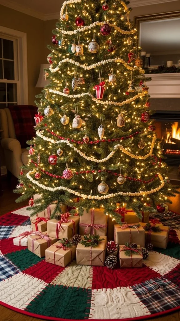 Creating a tree skirt from upcycled materials isn’t just budget-friendly—it’s meaningful. Each piece of fabric holds a little history, whether it’s from a favorite sweater or a blanket once used for picnics. By giving these textiles new life, you’re creating décor with personality and story.