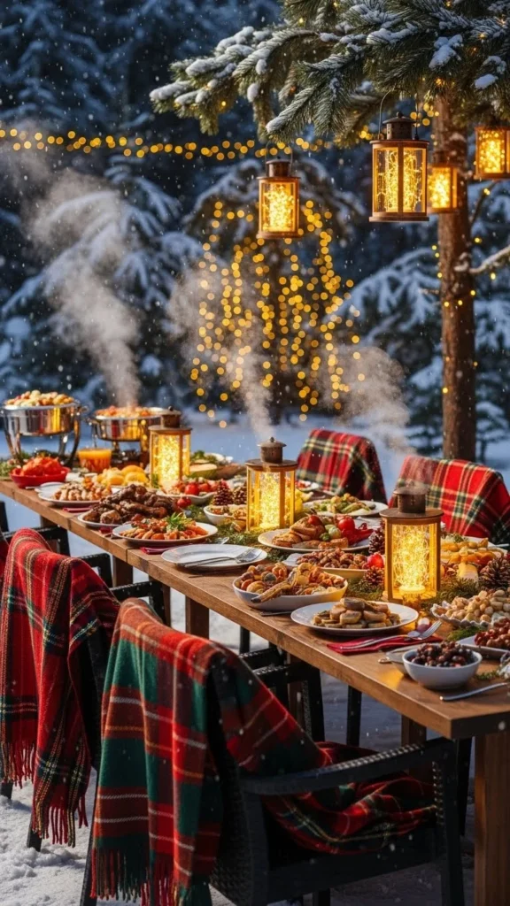 Styling an outdoor Christmas buffet table is all about mixing coziness with practicality. With layered textures, thoughtful lighting, weather-proof setups, and a festive flow, you can create an unforgettable outdoor moment that feels warm despite the cold.
