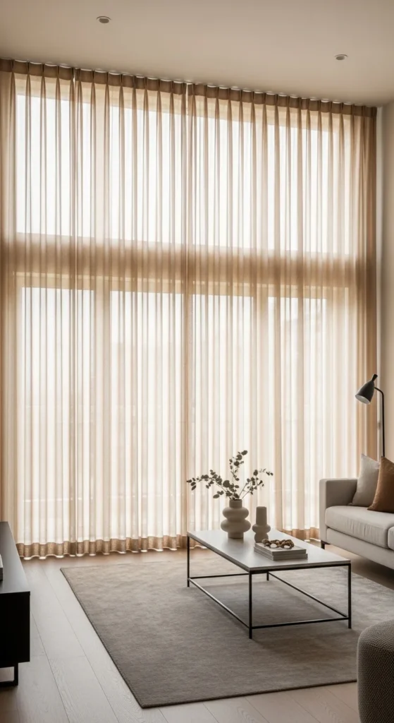 14. Curtain Placement That Lifts Ceilings