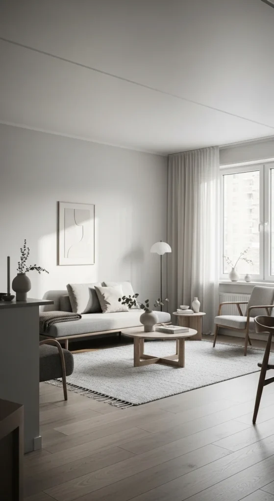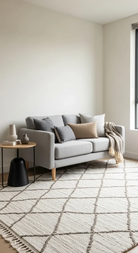 Avoid matching sets. Mix scale instead. A compact sofa with a larger rug feels intentional. For studios, zoning creates privacy without blocking light.