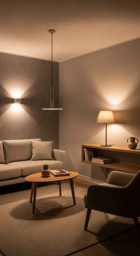 Lighting placed at different heights makes ceilings feel taller. That’s a quiet trick designers rely on in small spaces.