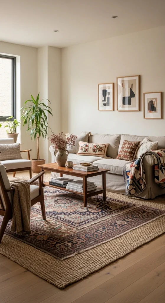 This approach adds warmth without clutter. It also lets you update the room slowly as tastes change.