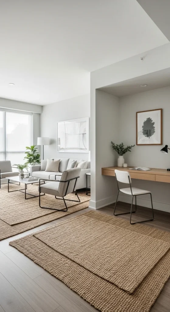 Open layouts can feel messy without structure. Zoning solves that. Rugs act like invisible walls. One under seating. Another under a desk or reading chair. Keep tones similar so zones flow together.