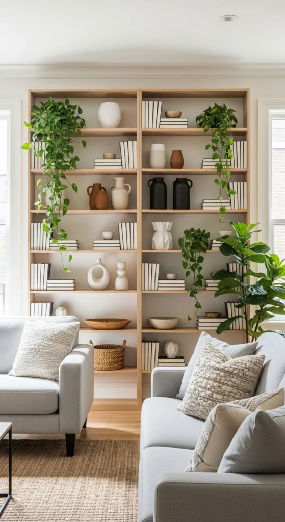 Style shelves with restraint. Leave breathing room between objects. Mix books with a few sculptural items. Keep heavier pieces at the bottom.