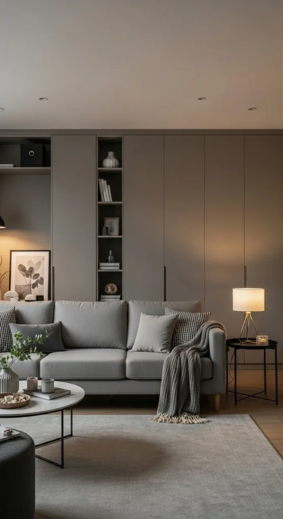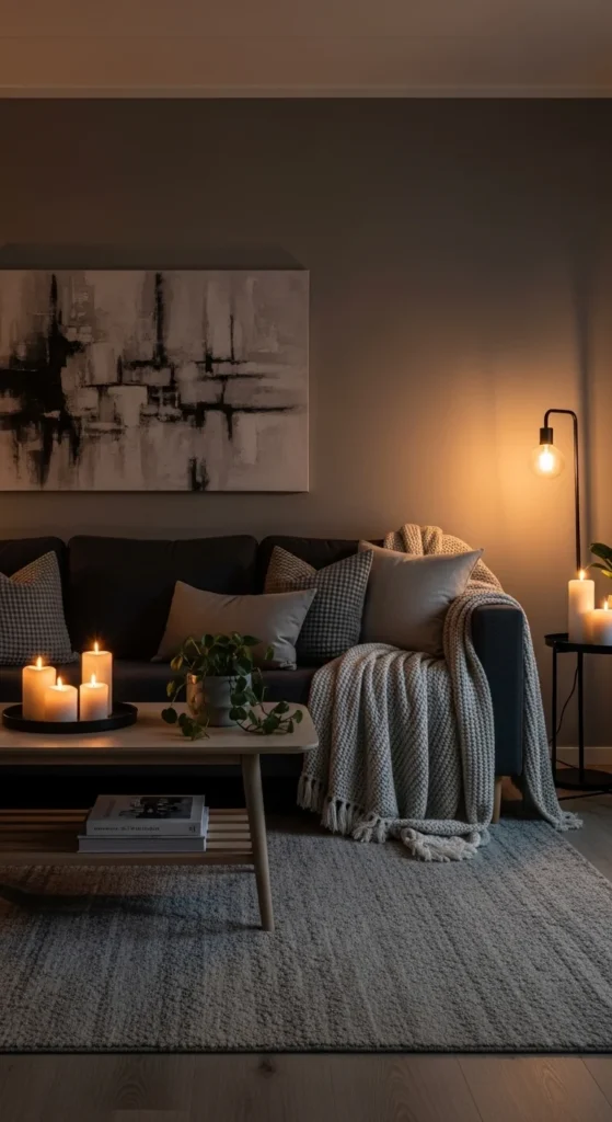 10. Grey Living Room Styled for Evening Mood