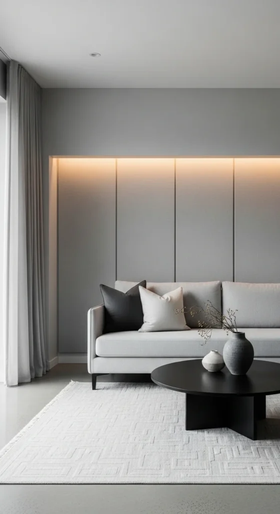 12. Grey Living Room with Textured Wall Panels
