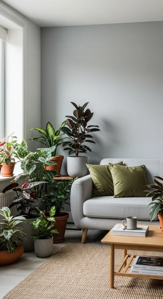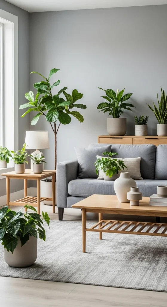Plants soften grey instantly. Even one large plant changes the feel. Choose leafy varieties with simple shapes. Place them near seating or windows.