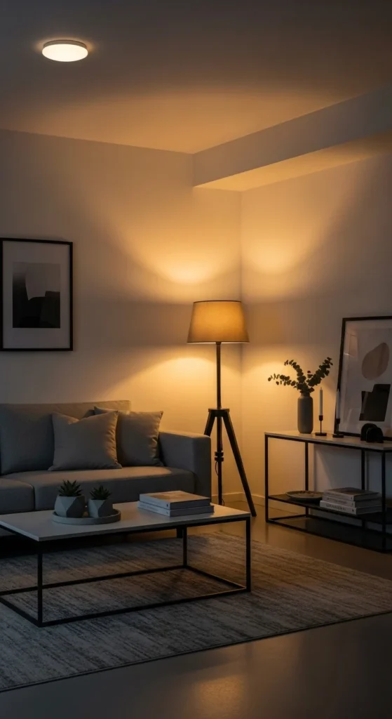 Start simple. Add two table lamps on opposite sides. Use warm bulbs only. Around 2700K works well. Floor lamps with fabric shades soften corners. Wall sconces save floor space in small rooms.