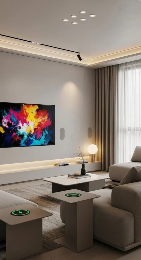Tech disappears best when planned early. Arrange seating first. Then hide devices within furniture and walls. Art TVs blend into gallery walls. Function stays quiet.