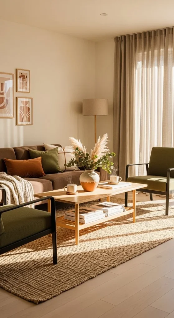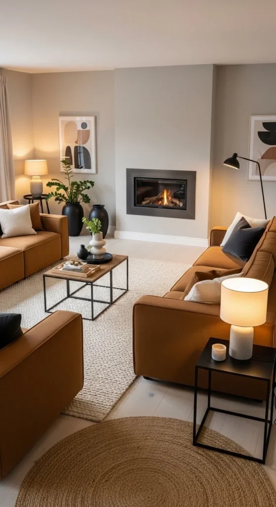 Earth tones ground modern layouts. They soften clean lines and add comfort. Start with one anchor piece in mocha or caramel. Build around it using tone on tone layers. Warm neutrals guide flow gently.