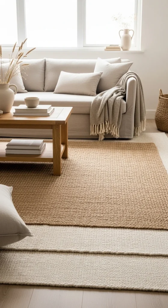Layering is your friend. Place a small wool or cotton rug on top for softness. This combo feels intentional and lived-in. It also saves money because the top rug can be smaller.