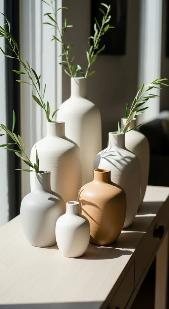 Matte sculptural pieces feel timeless because they rely on shape, not trend. They sit comfortably in almost any neutral space.