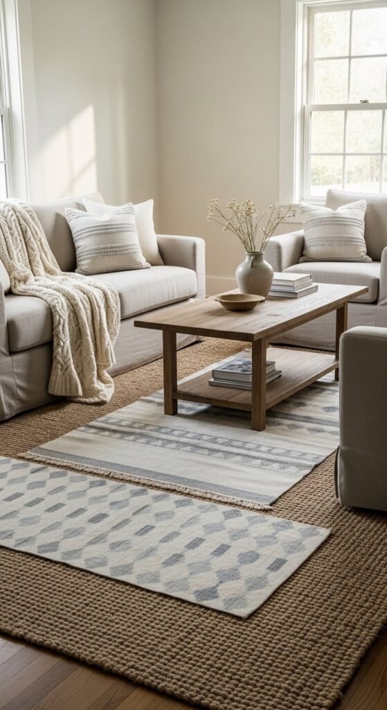 10. Layered Rugs That Ground the Room