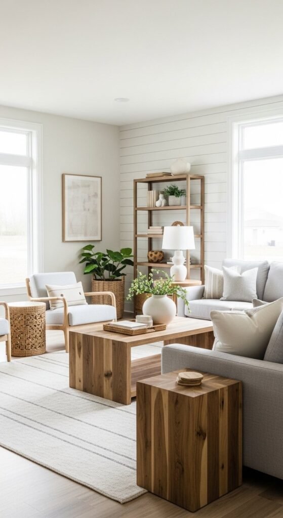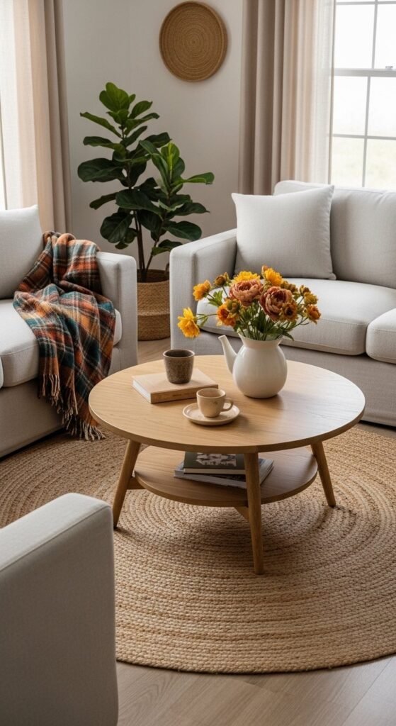 Throwing blankets adds comfort in small doses. Stick to neutral tones like cream, oat, or soft gray. Drape casually over sofa arms or baskets. Chunky knits and woven cotton work well together. Avoid layering too many textures in one spot. Two throws per seating area usually feel right. This simple addition makes rooms feel settled without extra furniture.