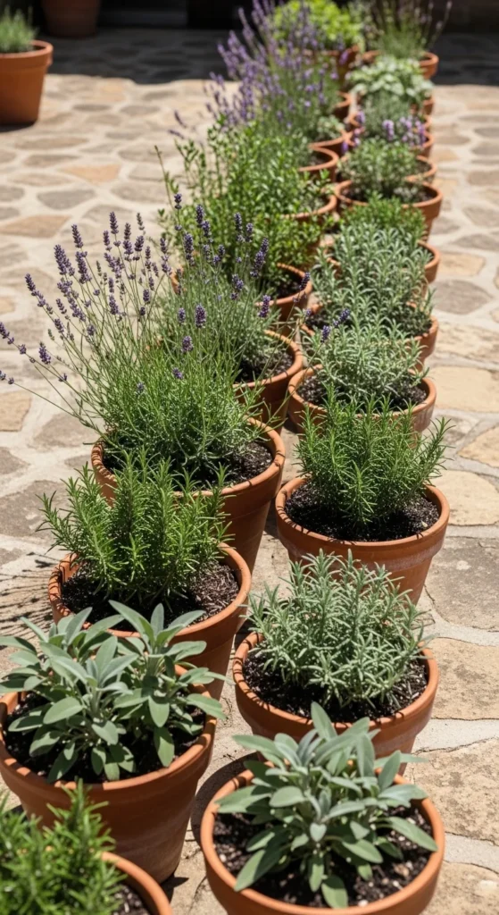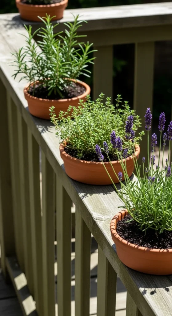 13. Aromatic Herb Planters Along Railings