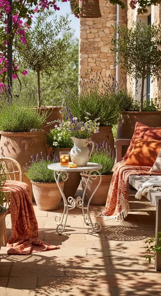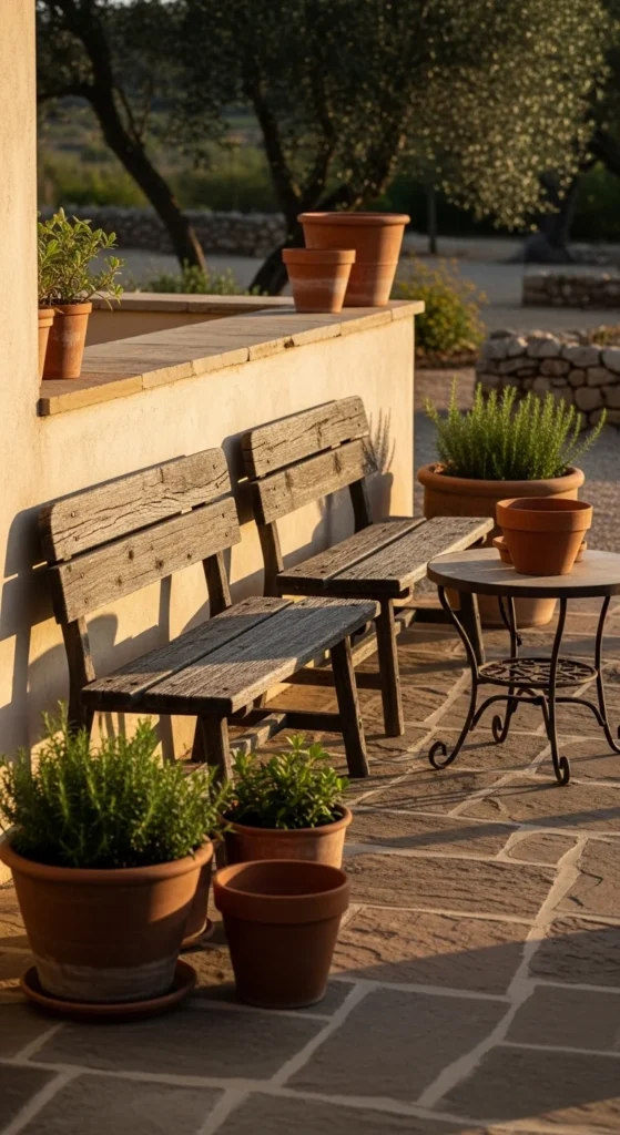 Native plants suit rustic patios naturally. They handle local weather better and ask for less care. Lavender and rosemary add scent when brushed past. Use mismatched terracotta pots. Chips and patina add character. Group plants at varied heights. Avoid straight rows. Let them spill outward. Start with small plants to save money. They fill out over time. Use gravel as top dressing to limit weeds. This border softens hard edges and adds sensory comfort without crowding the space.