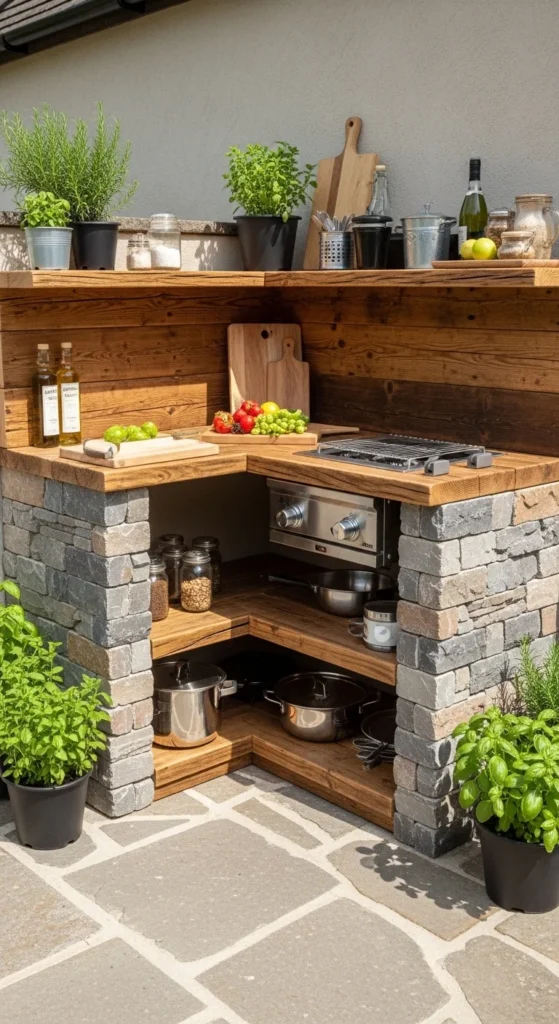 6. Rustic Outdoor Kitchen Corner