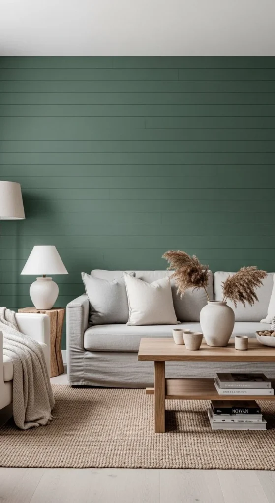 One accent wall adds depth without shrinking the room. Shiplap brings texture and farmhouse character. Stick to light colors for small spaces. Horizontal boards widen a room. Vertical boards create height. Peel-and-stick panels offer a renter-friendly route. If installing real boards, paint before mounting to save time. Keep surrounding walls simple so the feature stands out. A shiplap wall creates a quiet focal point that anchors furniture without visual clutter.