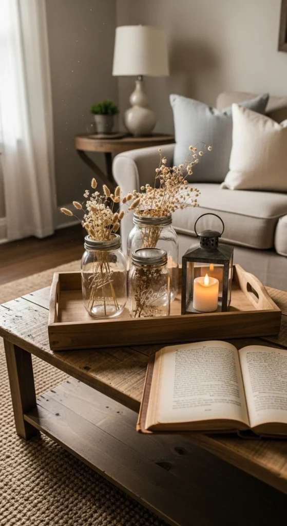 Vintage pieces add soul. Limit yourself to a few items. A pair of mason jars. One lantern. One old book. Group them on trays to keep surfaces tidy. Thrift stores and flea markets are great sources. Skip overly themed signs. Subtlety feels more authentic. This approach gives personality without clutter.