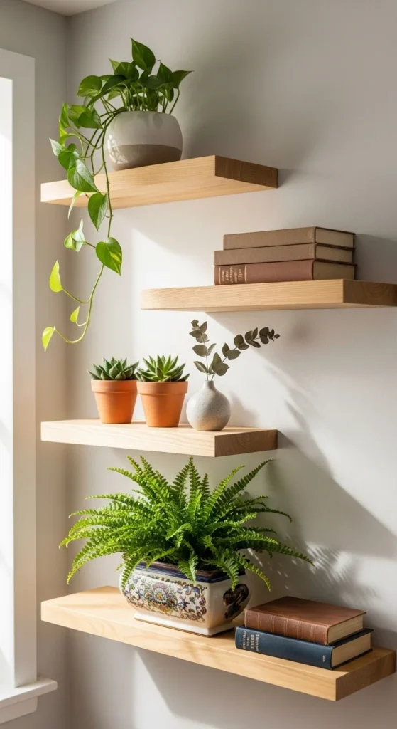 2. Potted Plants on Floating Shelves