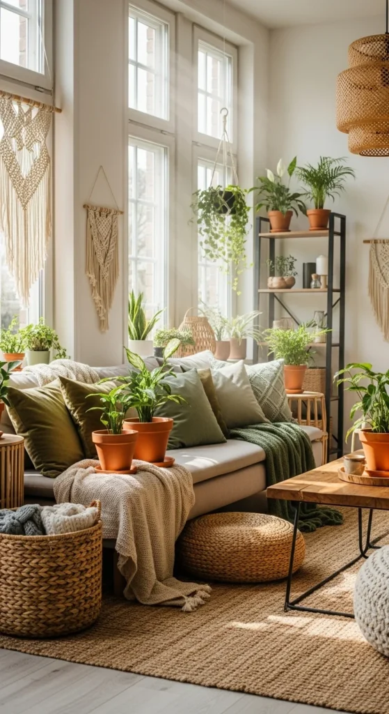 Corners often go unused. Hanging plants fill vertical space gently. Use ceiling hooks or wall brackets. Faux options work too. Keep heights staggered. Avoid placing above seating.